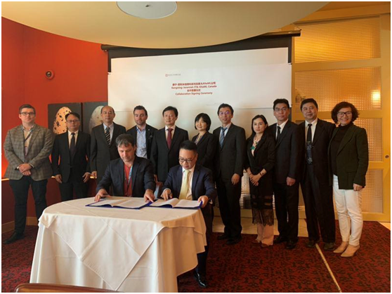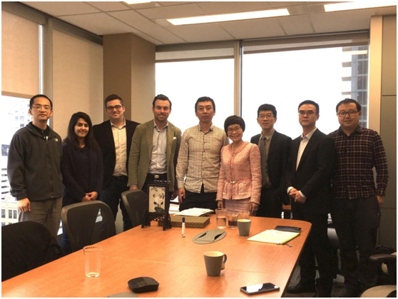 溫州醫(yī)科大學(xué)精神醫(yī)學(xué)學(xué)院黨委書記許冬武、耶利米信息科技有限公司董事長徐誼、總經(jīng)理項健、溫州康寧醫(yī)院國合部主任王保鳳與艾伯塔大學(xué)精神醫(yī)學(xué)教授曹礴于艾伯塔大學(xué)